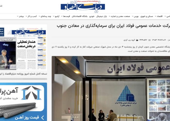 بازدید معاون استاندار کرمان از غرفه شرکت خدمات عمومی فولاد ایران در نمایشگاه تخصصی معدن جنوب کرمان ۲ روز قبل