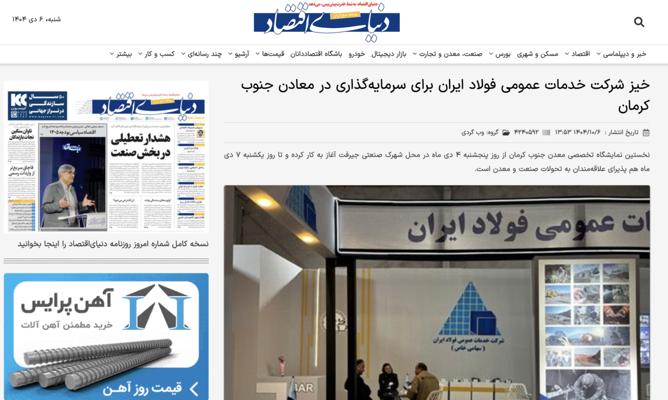 دنیای اقتصاد در گزارشی با عنوان «خیز شرکت خدمات عمومی فولاد ایران برای سرمایهگذاری در معادن جنوب کرمان» نوشت: